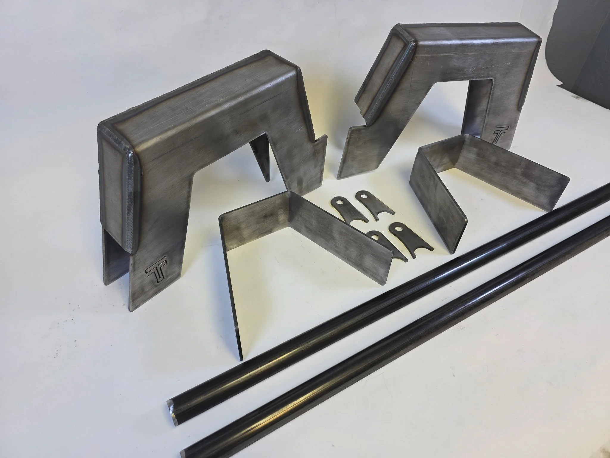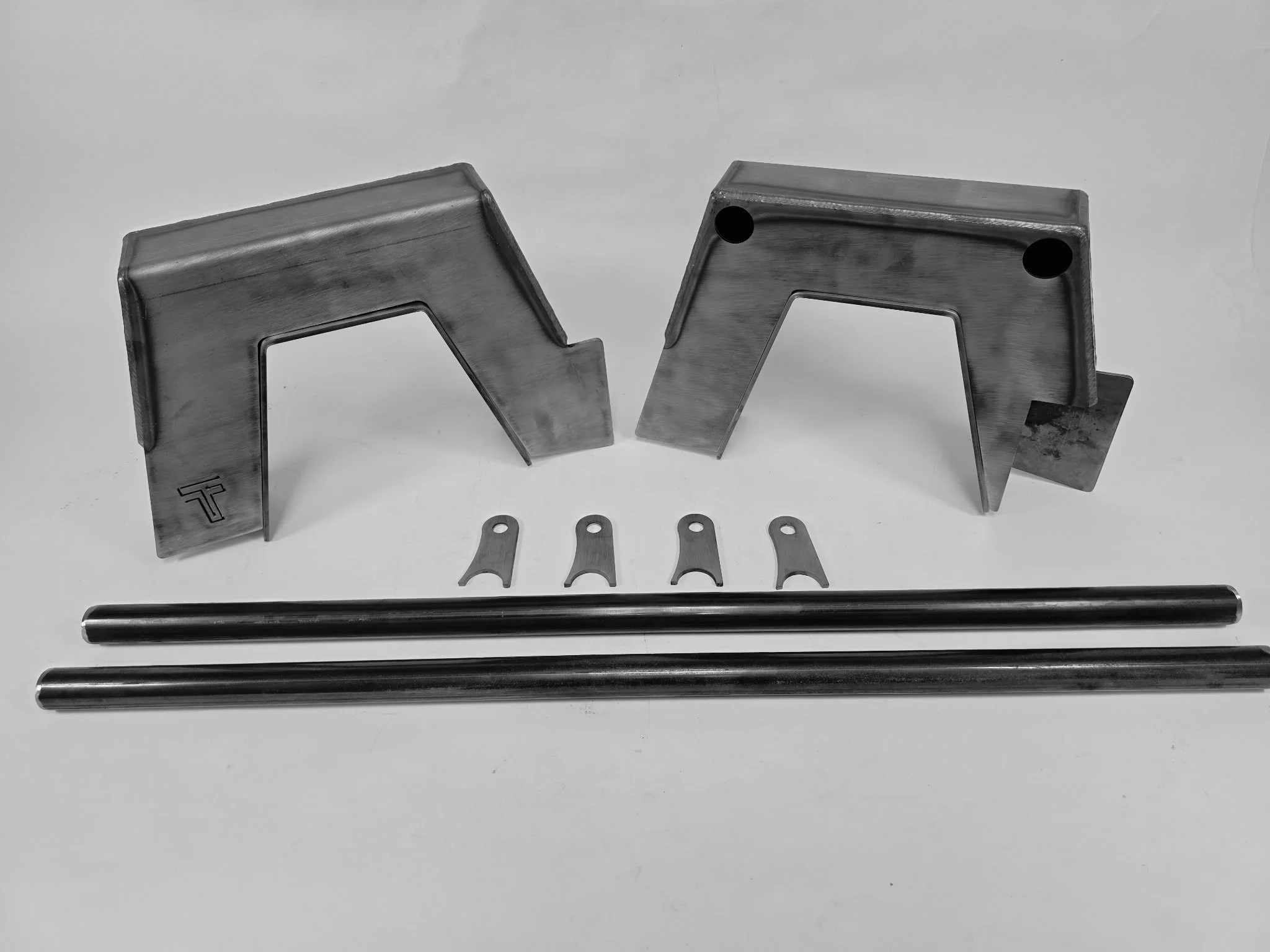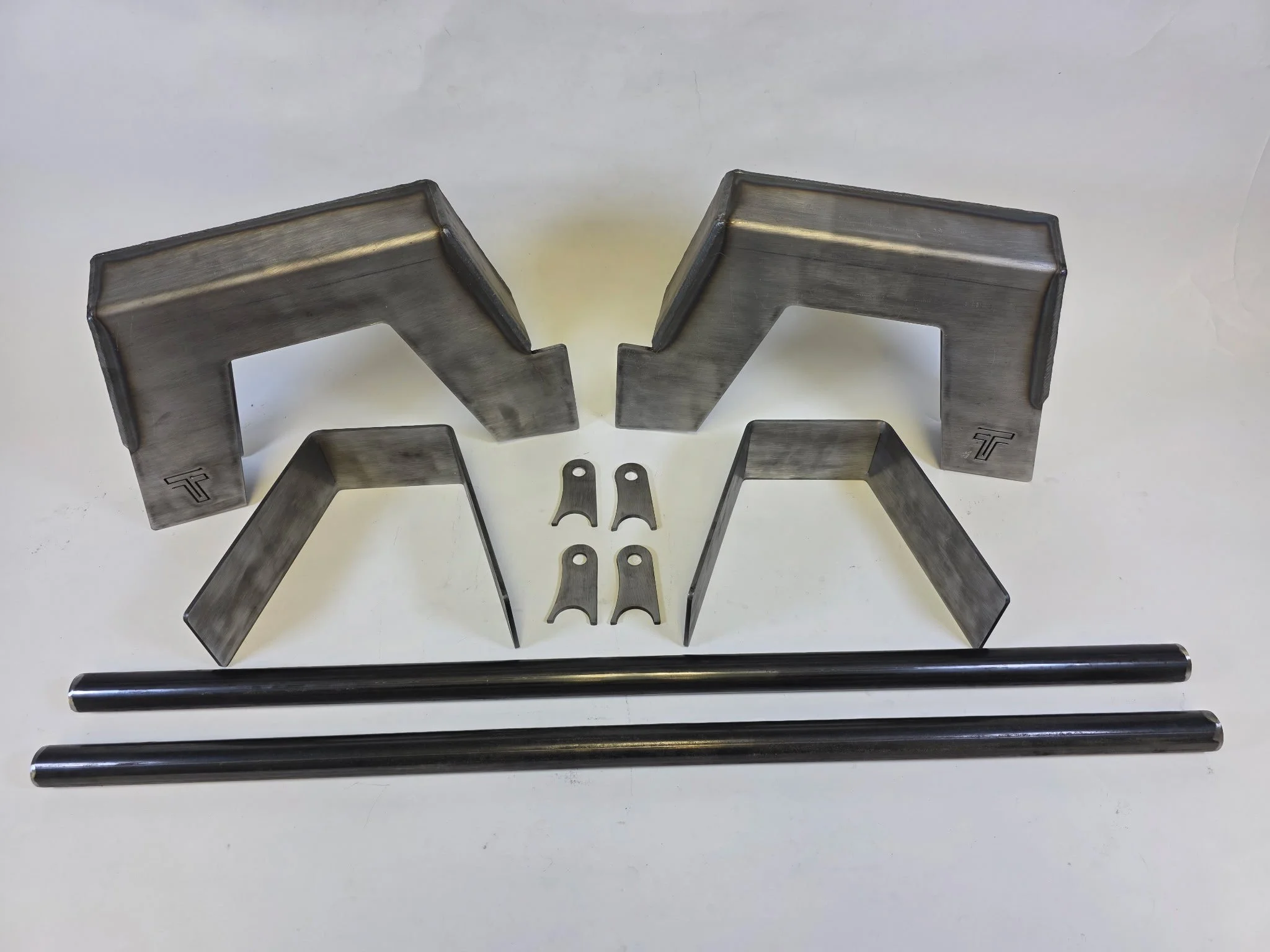 Comes with notches, 2 1.25” crossbars and upper shock relocation tabs.